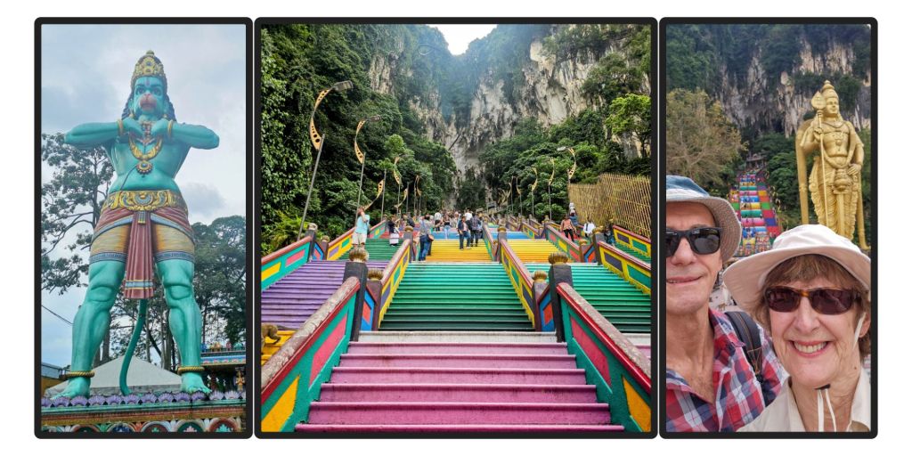We are in the rainy season but we head off the next day to the Batu Caves with its 282 colourful stairs leading up to Hindu temples in three caverns.