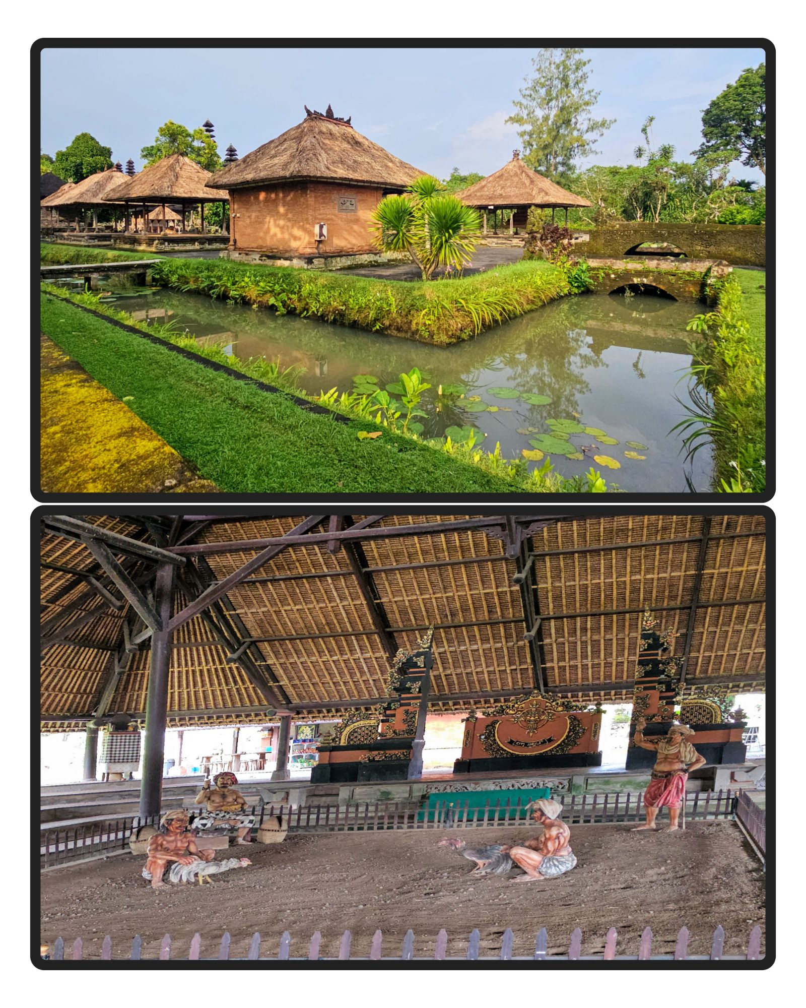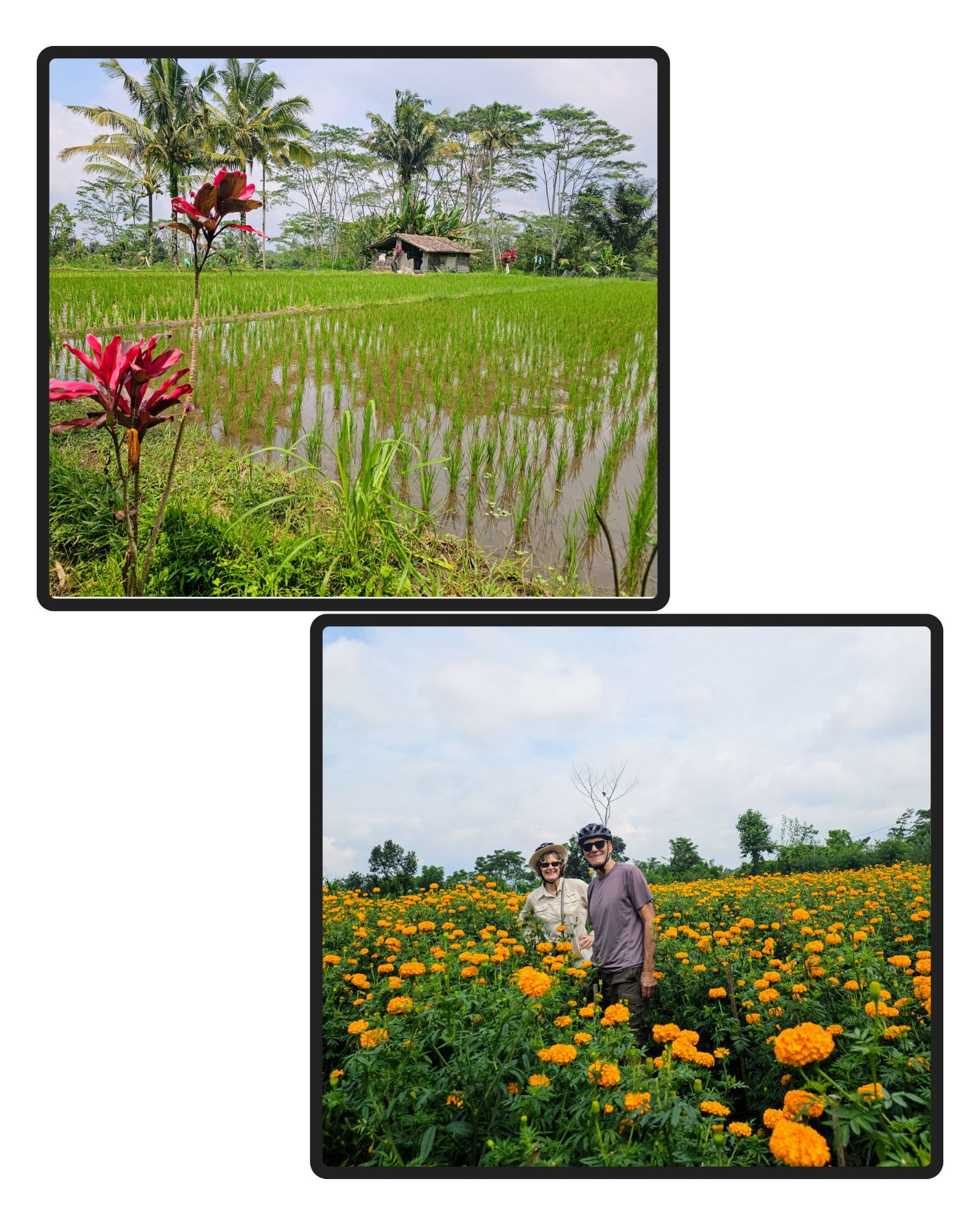 Three highlights of our short stay in the Indonesian province of Bali: a visit to a model, lived-in village;  a bicycle trip through ricefields, and rural kampongs (villages); and a tour by car to various sites around Bali.