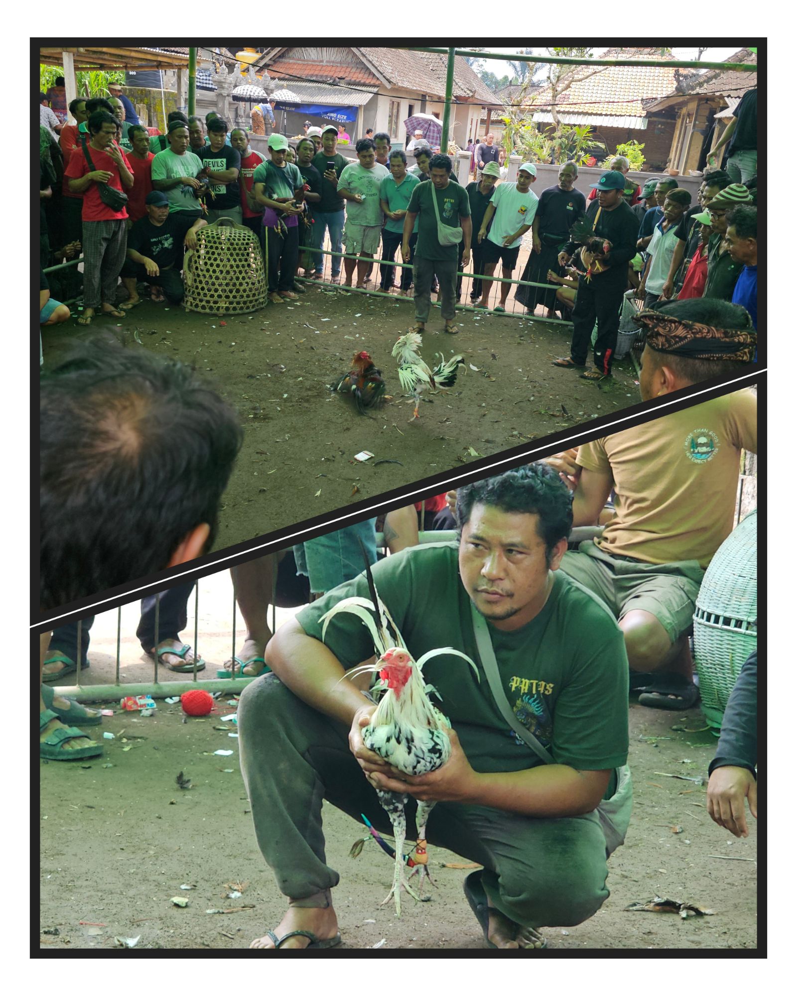 Cockfighting is a national pass-time in the Bali villages that goes back far into the island’s past. Some is sanctioned as part of religious ceremony and to raise funds for community works; others are illegal but quite often ignored by the authorities. Gambling addiction is a problem.